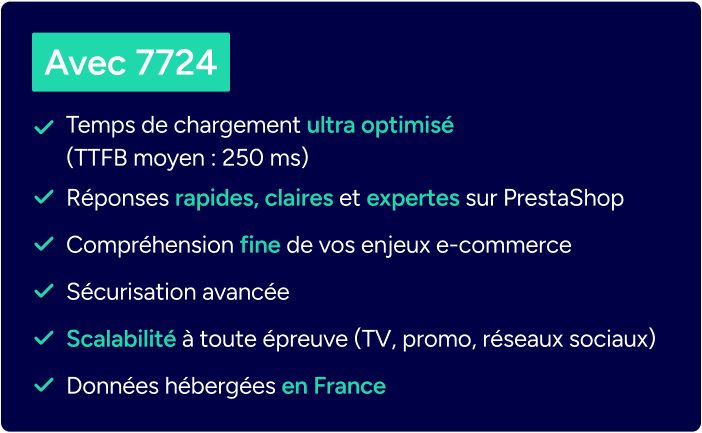 Depuis plus d’une décennie, Profileo a créé 7724 pour combler un vide : aucune solution d’hébergement vraiment adaptée aux utilisateurs de PrestaShop et Magento.