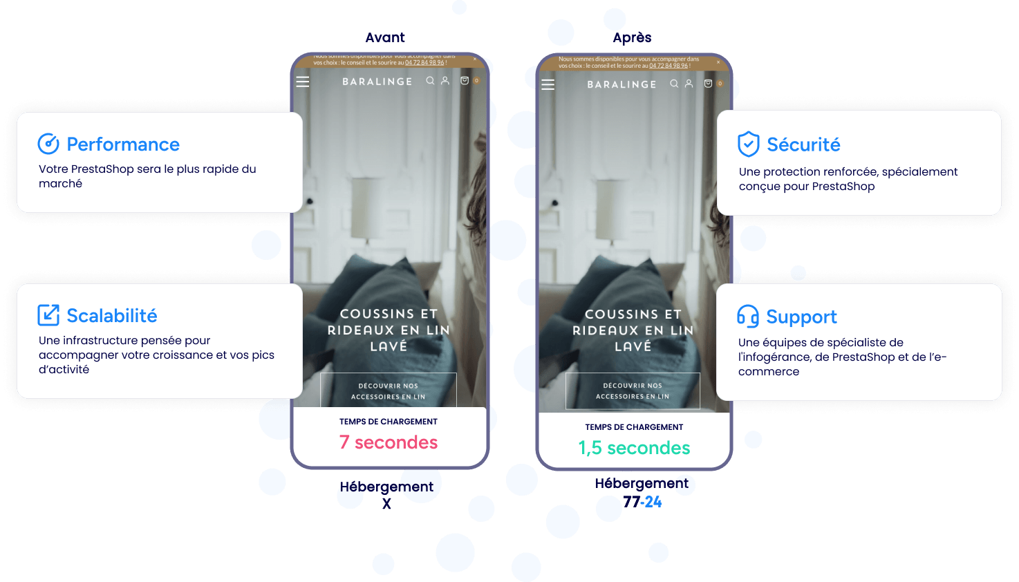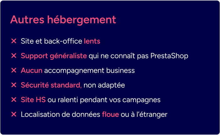 La solution d’hébergement PrestaShop de référence avec +1200 clients qui accélère votre boutique en ligne et sécurise votre business.